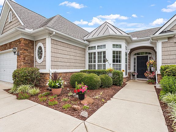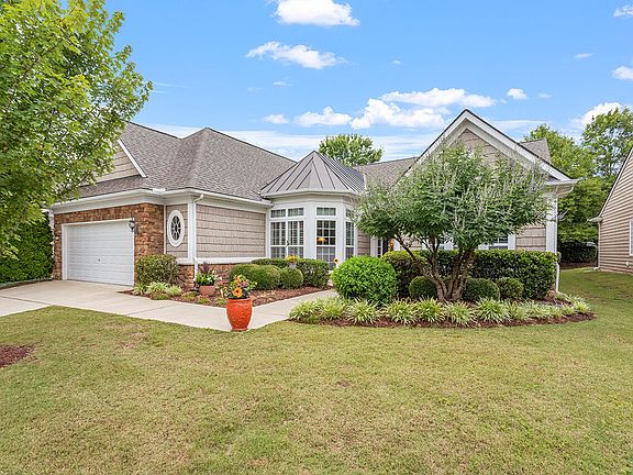 The classic yet casual Cumberland Hall offers a large and gracious open floor plan. From the stone front detailing and upgraded landscaping to the back yard trellis, this home is a delight. It is just steps away from the clubhouse where you can enjoy all that this 55+ community has to offer. Extensive gleaming hardwood floors *3 solar tubes for extra light *NEWER roof, AC compressor, gas water heater, refrigerator, low decimal Kitchenaid dishwasher, washer/dryer *Kitchen w/Zodiaq quartz counters, slider pull-outs, unique breakfast nook with 12 ft ceiling *living room w/cozy gas log FP + sunroom *primary bedroom w/custom closet design *Garage with storage above & storage racks.