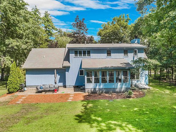 This contemporary Cape-style home has a bright and inviting atmosphere, nestled on a large private lot in Merrimack. Recent upgrades include a brand new roof and the addition of new bay windows that flood the interior with natural light. New water filtration system, newer boiler, water heater, and a fence to keep your kids/pets safe. The interior of the home features a spacious front-to-back living and dining room area with a fireplace and tons of room! The large sunroom off the kitchen leads to an outdoor patio area and the huge back yard. The large attached two-car garage has ample storage space above. This home has a full, unfinished basement that could be used as storage, a gym, or could be finished to add and additional 1000 sq ft+ of living space. This one is turn-key and ready for new owners. A must see!