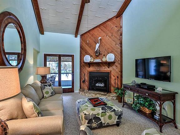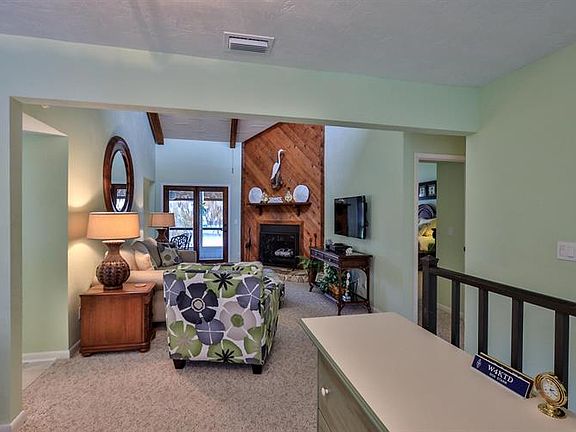 Great for year-round living or snowbirds who want to just close the door and go! The oversized screened balcony of this immaculate, updated second floor condo overlooks the pond and is accessible through French doors in the kitchen, living room and roomy master suite. The home features plenty of storage, cathedral ceilings and transom windows for light-filled spacious living areas, and a beautiful wood-burning fireplace. The large kitchen has updated LED lighting, eat-in nook, and laundry closet with stacked washer dryer. New appliances in 2017, new A C 2012, and water heater in 2013. Newly carpeted in 2017, updated bathroom cabinets. Long-life metal shake roof installed in 2012, exterior painted in 2019.Yearly $830 master association fee covers 24 7 staffed security gate and roving patrol.