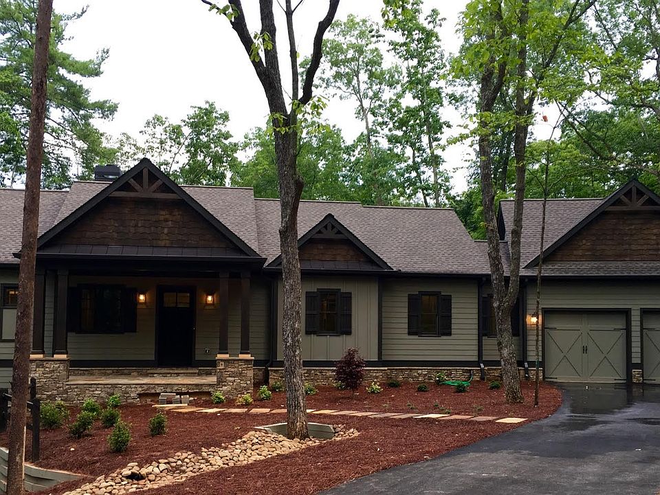 3 bedroom, 3.5 baths; can finish out 4th bedroom and 4th bath, if desired; Level driveway (rare and coveted feature in Big Canoe); Master bedroom and guest bath are both on main level; Mud room is at the entrance of garage and close to laundry room; Command center desk; Private powder room; Screened and vaulted porch with fireplace; Vaulted great room with exposed beams and large fireplace; 42-inch wide front door; Open kitchen with large island; Cedar shake, Hardie siding, and stacked stone exterior; His and hers vanities in master; Large family room on terrace level; Large terrace level covered deck; Tech-shield sheathing on roof to keep energy costs down; Septic system designed to handle a garbage disposal; Cedar shutters and gable brackets;
