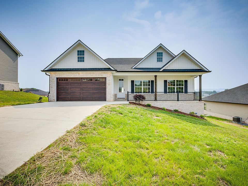 Welcome to this brand new home by JTB Construction, which offers a perfect blend of modern elegance, functional design, and ONE LEVEL living. The welcoming front porch leads you straight through the front door and into the spacious and inviting open floor plan, which seamlessly connects the main living areas. The center of the home provides natural light, high ceilings, and easy access to the covered back porch with mountain views. The beautiful kitchen is equipped with quartz countertops, stainless steel appliances, plenty of storage space (including a pantry), and a large island perfect for meal preparation and casual dining.