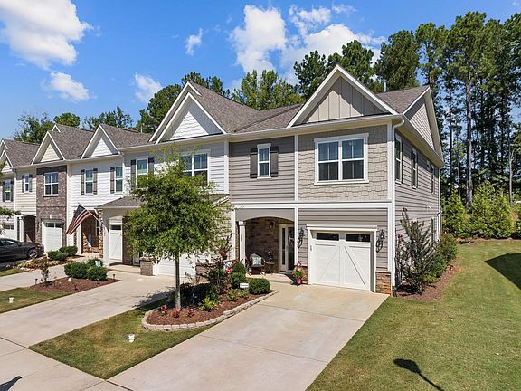 End unit townhome has it all. The home loaded with upgrades. Meticulously maintained in mint condition. The Belle of the Ball in the neighborhood. Tons of natural light due to end unit extra windows. Gleaming wooden floors throughout on first floor. Wrought iron balusters on staircase. Stainless appliances (fridge conveys). Upgraded granite kitchen counter tops. Pull out shelves in kitchen cabinets. Huge kitchen island. Walk in pantry. Ceiling fans throughout home. Open floor plan perfect for entertaining. Enjoy gas log fireplace in family room. Spacious primary suite with tray ceiling and upgraded tiled ensuite. Large walk in tile shower. Huge primary closet. Premium private beautifully landscaped lot. Did I mention Private Screened back porch?! Yes there is. Beautiful serene wooded view from screened porch/back patio. Location, Location, Location! Centrally located to Apex, Cary, Holly Springs and quick drive to Raleigh. Convenient to new 540. Excellent Holly Springs schools. Community amenities are outstanding. Pool is like a water park. A kids dream on hot days. Fitness center. Highly sought after community.