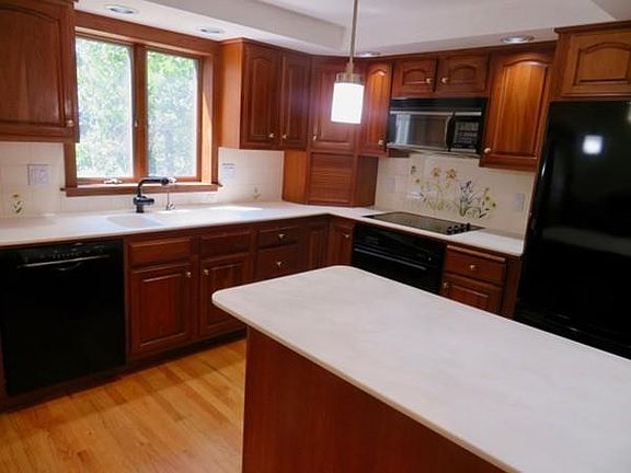 - Kit Dscrp: Flooring - Hardwood, Countertops - Stone/Granite/Solid, Kitchen Island, Recessed Lighting