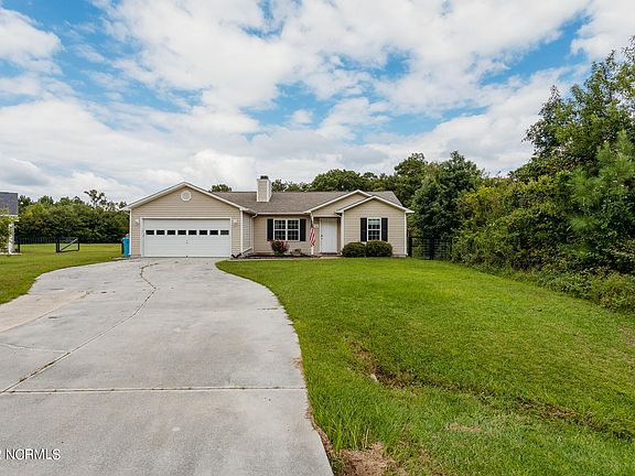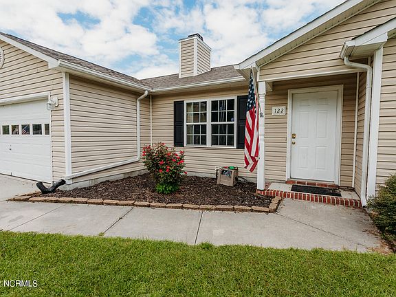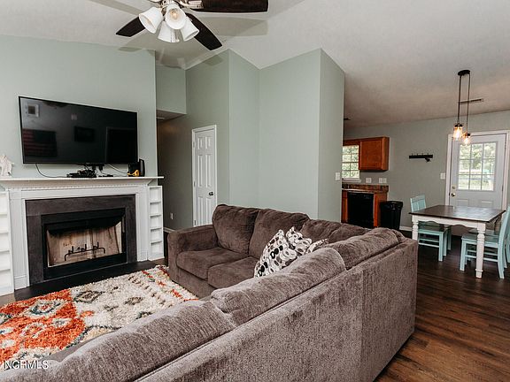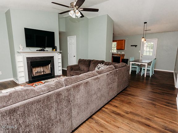 Welcome to 122 Burrell Lane! This home is located in the Kingswood housing development and sits on 1.03 acres near the end of a cul de sac. You will be able to enjoy a quiet neighborhood with the bonus of no HOA. This home offers 3 bedrooms and 2 bathrooms with over 1,200 square feet. As you walk inside, you are greeted with an open floor plan with vaulted ceilings in the main living area. The living room has a cozy fireplace you can enjoy. The eat in kitchen has plenty of space for entertaining. Throughout most of the home you'll be met with LVP flooring and an excess of closet space. The primary bedroom has two walk in closets and an ensuite bathroom with a dual sink vanity. The two car garage is insulated and inside you'll find a custom work bench. Outback you will find a patio and fire pit, perfect for entertaining.