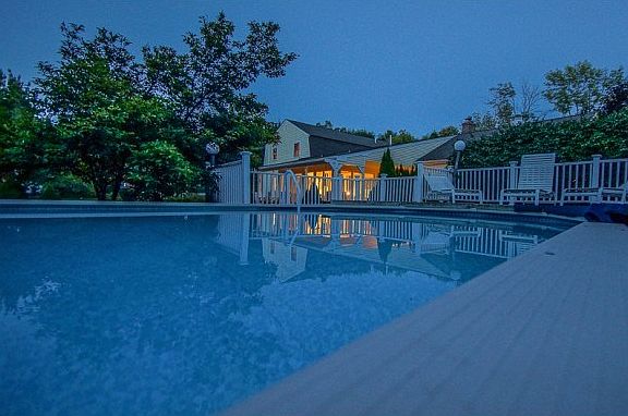 Imagine falling in love: open concept ranch w 1st floor master suite AND the charm of a gambrel w 3 upstairs BR (22x17 & 20x13). Next to Million$ homes, beautifully landscaped 2ac private flat lot w fruit trees. 20x13 sunroom to die for, deck/patio w pool. Oh the food you will have here: updated kitchen (granite counters, pantry, built-in spice racks in center island) overlooking gas frpl in family rm w cath ceiling. Mudroom w cubbies, closets, connects garage to kitchen, only 2 steps to unload groceries. Large windows, tons of sliders, skylights pour the light in. Formal dining rm open to 20x13 sunrm, 25x13 living rm add more fun space. Separate wing: 25x14 master BR w his/her closets, bath w his/her side sinks could be used as potential in-law suite. 27x23 work-out/pool table area and 20x12 play room in finished lower level + unfinished area w shelves, closets. Enjoy fun ABG pool, roasting marshmallows at the firepit, deer-watching or a stylish party at your new fabulous home!