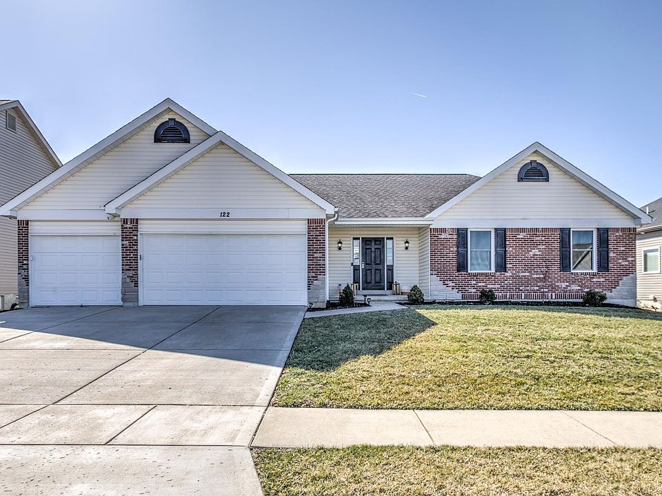 Welcome to this STUNNING renovated ranch home in Wentzville! This 4 bed, 3 bath home with 3 car garage offers 2,387 sqft of living area to entertain your guests. This freshly painted home boasts soaring vaulted ceilings, open floor plan, fireplace, recessed lighting & gorgeous laminate floors. The newly renovated kitchen features beautiful white cabinets, granite counters & tile backsplash. You will fall in LOVE with the Master with shiplap accent wall, walk-in closet & updated master bath with jetted tub & separate shower. There are 2 additional bedrooms on the main floor & full bath. The recently finished lower level is complete with a rec room, additional bedroom, bathroom & area roughed in for a kitchenette. All of this with new windows (2020) & new sump pump. This Spring enjoy time grilling on your patio overlooking the newly fenced in backyard. Schedule your showing today!