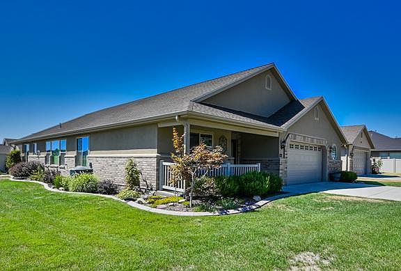 55+ Community living with mountain view's that can be enjoyed from the front patio, living & dining rooms and even the den. Roof replaced in July 2019. 6' add on entire north side of home making the garage, kitchen that much more spacious. 2 master bedrooms, walk-in closets, secluded office/den at the front of the home looking out to the Wasatch front. Large laundry room, 2 car garage w/ extra large storage room/work area. Low E windows. Finish your tour on the beautiful private back patio & watch the sunset. HOA Snow removal and front lawn maintenance