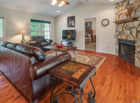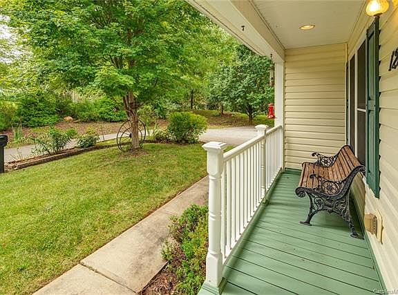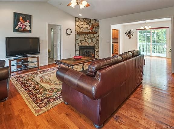 Charming home located on a cul-de-sac, property is perfect for anyone wanting a solid, one level home. Privacy & views from the porch. Gorgeous yard has level garden area w/irrigation system. Large living area w/flagstone floor-to-ceiling fireplace opens to dining area. French doors lead to large deck w/stairs to the expansive back yard, perfect for children or family gatherings. Spacious kitchen w/maple cabinets, marble countertops & lots of storage. Vaulted ceiling en suite master w/whirlpool tub on one side, with 2 bedrooms & full bath on the other side of split floor plan. Beautiful finished hardwoods, carpeted bedrooms, tile in kitchen & bathrooms. Large 2-car garage, leads to mudroom/laundry room, conveniently located to the kitchen for unloading groceries. Also a whole-house Generac generator! This is a must see house! Furnishings available for purchase separately.