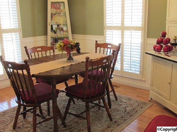 - DINING ROOM DESC: Wood Floor, Chair Rail, Window Cov, Crown Mold