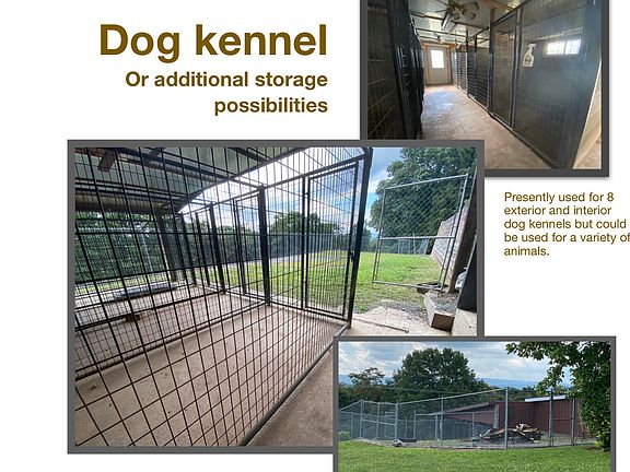Imagine the possibilities! Enjoy panaramic views of the Alleghany mountainside while strolling through the park like setting on 3.14 Acres. The home was built to take in views. Cathedral ceilings in the great room are flanked by windows that enjoy panaramic views of the countryside while a sunken living bonus room could easily serve as a home office. Three bedrooms on the first floor have walkouts to private balconies while the walk out lower level provides amazing storage and bonus rooms. A kennel is located on the property which has 8 interior and 8 exterior kennels. Huge fenced kennels could be used for dogs or other small animals. Storage buildings are plentiful plus adjacent guest house/double car garage is also available for an extra $59K