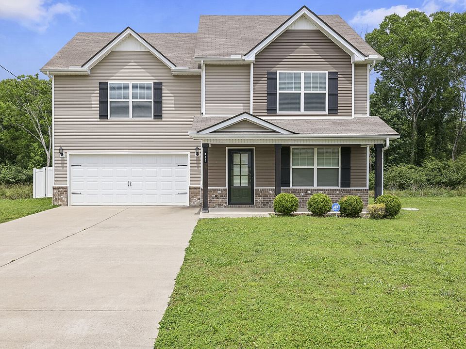 Beautiful and wonderfully maintained 4 bedroom, 2.5 bathroom home in LaVergne! The welcoming exterior features a covered front sitting porch to enjoy the Tennessee weather. The open concept living/dining space continues into the gourmet kitchen boasting stainless steel appliances, and elegant dark wood cabinets. Bonus office space on the main level, adjacent to the kitchen.  The inviting primary suite is completed with 2 closets and an en-suite bathroom that features a dual vanity and tub/shower. Additionally, the comfortable guest bedrooms are complete with plush carpets and are brimmed with natural light. Located in the Lake Woods Community, this neighborhood offer some of the best lots in Middle Tennessee. The private back patio and yard backs up to a mature tree line for privacy. This home is in the perfect location nearby with shopping and schools, and less than 2 minutes to Hurricane Creek Recreation Area and Boat Ramp!