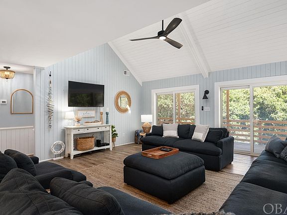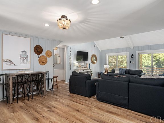 Enjoy the wooded privacy of this recently updated Chicahauk 5 bedroom, 4 bath vacation home.  The pride of ownership shows in every detail- from the stylish décor to the remodeled kitchen and bathrooms.  The spacious main floor features a vaulted cathedral ceiling in the comfortable shiplap-clad family room, a beautiful kitchen with new stainless appliances and quartz counters, an adjacent dining area with easy access to the wide, covered deck for al fresco dining, two tranquil guest rooms, and the first of three ensuite bedrooms.  The primary ensuite on this level is a serene retreat with a private bathroom boasting a quartz-topped double vanity, high end fixtures and a custom glass shower door.  The upstairs features two relaxing private ensuite bedrooms separated by a wide gallery (with a discreetly hidden laundry area) overlooking the family room below.  Both ensuite bathrooms have quartz-topped vanities, high end fixtures and custom glass shower doors. This lovely X flood zone home has been freshly painted, lovingly updated, and meticulously cared for.  Discerning buyers will appreciate this fresh, turnkey property located in one of the most sought-after neighborhoods on the OBX.  Perfect as a primary, second, or vacation rental, “Beach Blessings” offers an easy walk to the beach via the beach access one lot over, and convenient proximity to all the great restaurants, shopping, and attractions of Southern Shores and nearby communities.  Don’t miss the opportunity to see this charming and attractive home while it is still available!
