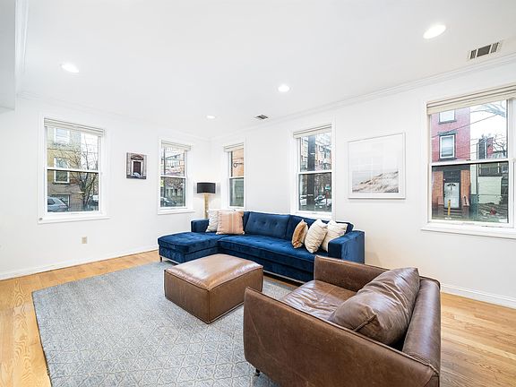 Occupying two full floors of a stately corner brick building constructed in 2004, this expansive condominium residence offers the ultimate blend of space, comfort, and convenience. The oversized duplex boasts 1800sf of generous living space, 3 Bedrooms, a bonus room perfect as a home office, a den or a fourth bedroom, 2 Bathrooms, a powder room and a laundry room. With 18 oversized windows and 3 exposures, the entire residence is flooded with natural light and the atmosphere is cheerful and tranquil. The spacious corner primary bedroom suite is furnished with an en-suite bathroom featuring a walk-in shower, two closets and windows on two sides. The additional bedrooms are also in excellent proportions. With an elegant floor plan and spacious rooms, there's ample room for everyone to spread out and thrive. The gorgeous home is further outfitted with hardwood floors, Central AC and Heat, built-in storage and ample closets. Situated in the heart of the highly sought-after Hamilton Park neighborhood of Downtown Jersey City with the historic park, Grove Street and Newport PATH stations, renowned restaurants, cafes, schools and shops all in close proximity, this extraordinary residence is a rare find.
