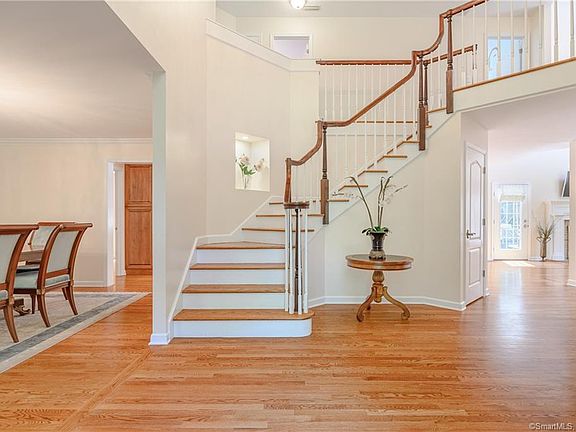 Immaculately maintained Colonial nicely situated on a beautiful lightly treed lot. The open floor plan has a great flow and tons of natural light. The eat-in kitchen has gorgeous custom cabinetry, granite counters, and an oversized island that makes for a wonderful gathering space. The butler's pantry is amazing for storage and preparation. The kitchen opens to the great room with a vaulted ceiling and fireplace. Glass doors from both the kitchen and family room lead to the oversized deck with retractable awning, a sitting area and additional area for dining and grilling - a comfortable place to be at all times of the day. Completing the main level is a perfectly sized dining room directly off the kitchen and an office to the other side of the foyer. Head up either the front or back stairs to the upper level with a spacious master suite, three additional bedrooms and a renovated full bath with double sinks and marble tile throughout. The large master suite is a retreat with a gas fireplace, sitting area and California walk-in closet. The master bath has been renovated and is stunning with marble counter and floor, a jetted tub with marble surround, and a marble shower with frameless glass door. The full basement has ample space for storage or can be finished for even more living space if desired. This house is a must-see! Both beautifully appointed and perfectly maintained on a gorgeous and private lot, yet also conveniently located close to town and to I84. EcoBee thermostat and security system can be controlled remotely by app