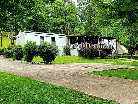 This property boasts one of the flattest lakeside lawns on the entire lake! Super gental slope to large quite cove. The property consists of the main mfr home 2 br 2 bath excilent condition, then a 2nd mfr home that was used as a arts and craft building. Several great outdoor living spaces to enjoy as well single slip boat dock with swim plattform