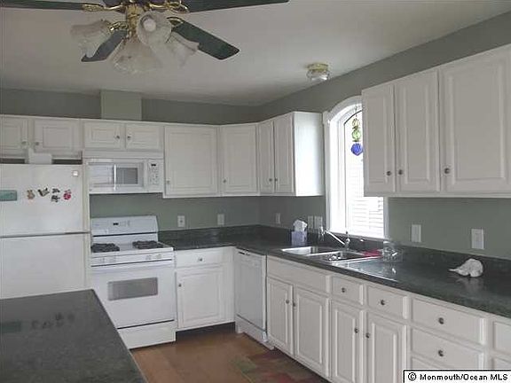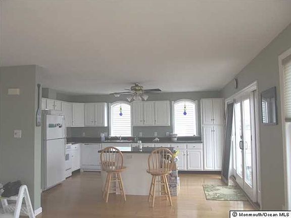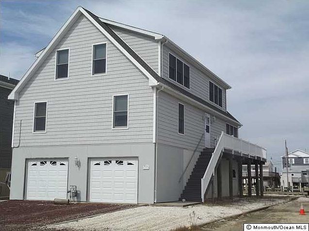 Great Beach home with vinyl bulkhead for large family. 2025 Sq ft. 3 Bed, loft provides area for possible 4th bed. Additional room can be office or 5th bed. Home was built on pilings in 2000 so, no damage in living space from Sandy! Open floor plan-great for entertaining. Huge master on top floor! Sliders off kitchen open to Trex Deck that wraps around both sides of home. Bay soooo close at end of street. Basement & garage side by side on slab