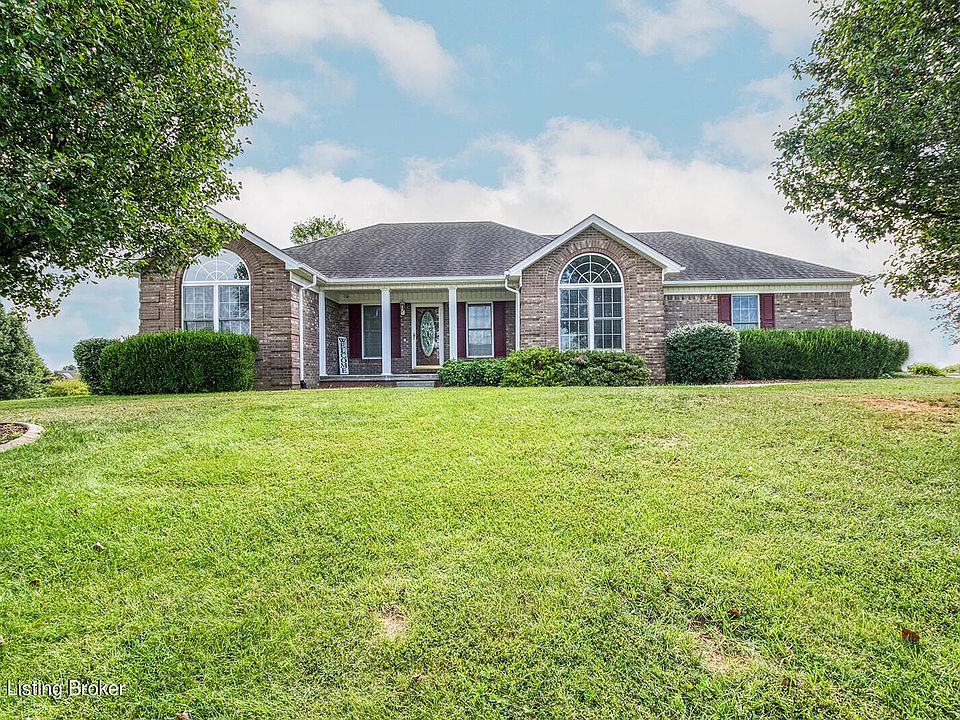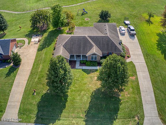 This beautiful home in Woodlawn Springs offers many great features including a split floor plan, covered rear porch and beautiful views. Modern kitchen with lots of cabinetry and plenty of counter space and adjoining dining area with cathedral ceiling. Tile in kitchen, utility room and all baths. Hardwood in dining room and entry foyer. Master suite is roomy with 2 walk-in closets, double vanity in bath, walk-in shower and unique contemporary claw foot tub. Downstairs features a huge family room, large office space and 4th bedroom. The mechanical room downstairs is huge and offers lots of storage. Great neighborhood with HOA shared pool, basketball and pickle ball courts. Only minutes from downtown Bardstown.