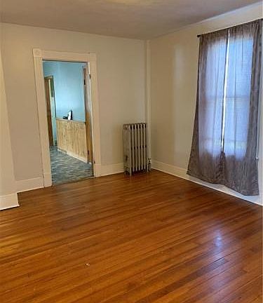 First floor of 2 family house. Large apartment, all wood floors, energy efficient with newer windows and Gas heat. Eat in kitchen that includes stainless steal refrigerator, stove and dishwasher. Laundry off of kitchen with washer & dryer included too. Some storage in basement. Parking for 2 cars off street. Non smokers only. Landlord will consider 1 cat or 1 small dog.