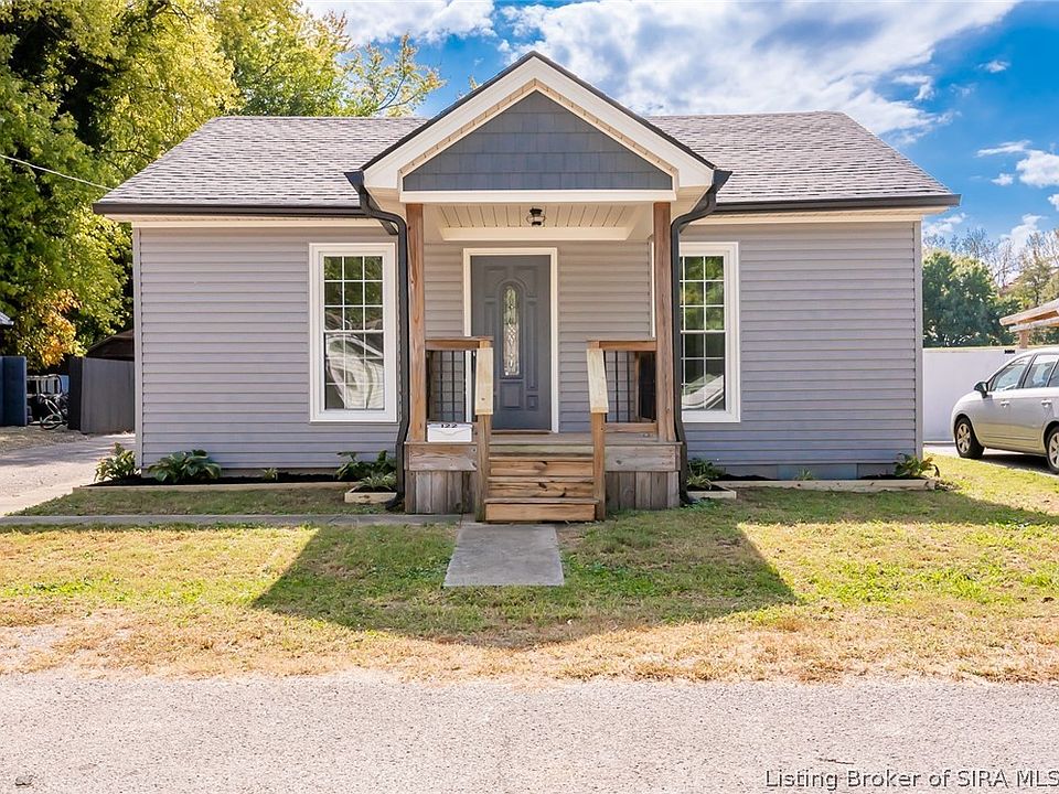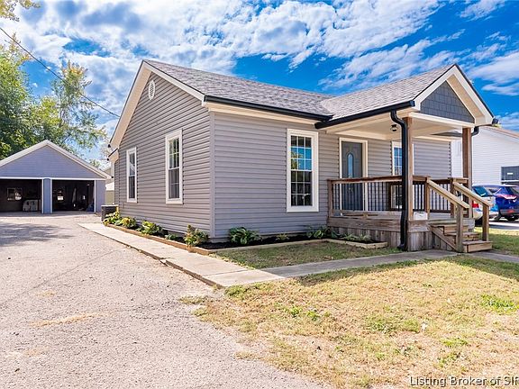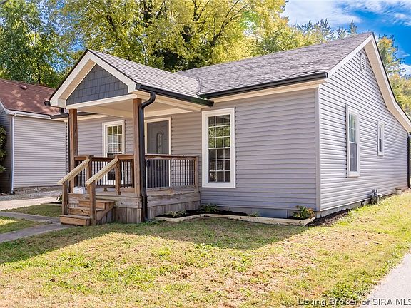 Open House, Sunday, 10/9, from 2 PM - 4 PM! You'll love to call this place home! Come take a look at this beautifully remodeled home! 2 bedrooms and 1.5 baths! New roof in 2020! New siding and gutters in 2021! Updated windows! New A/C in 2022! New flooring! Fresh paint! New baths and kitchen! 2 car detached garage! As you step in the front door, the large living room welcomes you inside! The living room flows past the pantry into the eat in kitchen with granite countertops, updated cabinets, ceramic tile backsplash, and new stainless steel appliances that will remain with the sale! The full bathroom with custom ceramic tile is off the hallway along with the half bathroom! The two good size bedrooms are split! Out back is a HUGE deck for relaxing after a long day! Enjoy the views from the back yard down toward the Falls of the Ohio! This home is walking distance to the riverfront and all the walking and biking paths! Great location with easy access to all of Southern Indiana and Louisville! This home is the total package! Call today for a private showing before it's SOLD!