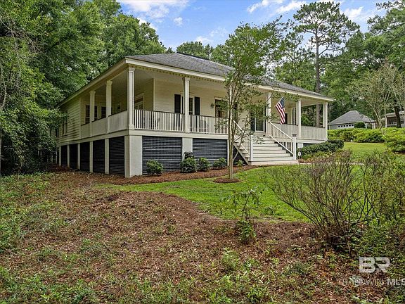 Do you need a separate suite for a family member or air bnb? This house is perfect. guests gave their own entrance, full bath, a huge multifunctional room and a private screened porch overlooking woods. This stately home is located in Daphne on one of the best quiet streets. The raised cottage has wrap around front and back porches that lends itself to entertaining. The Southern Living design has a wide central hall, an extra room in the front with its own entrance that could be a study, office or another bedroom. There is a gracious separate dining room, a sunroom, large dinette, living room with fireplace and built ins that opens to the back screened wrap around porch. 2 large bedrooms with lots of storage and a bath and a half grace the front of the house. The primary bedroom is giant, with lots of closets, 2 full baths and an adjacent hobby room/den with its own entrance and a private screened porch overlooking woods. The curving drive between columns completes this wonderful home. Buyer to verify all information during due diligence.