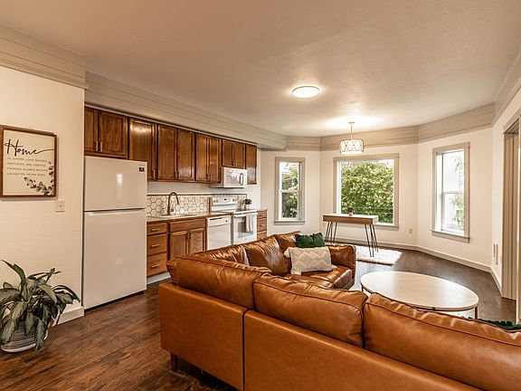 Recently updated 2 bedroom, 1 bath unit featuring a functional layout with bedroom on the main level, in-unit washer and dryer, and a private balcony. Street parking only. Water, sewer, garbage, and landscaping included in rent.