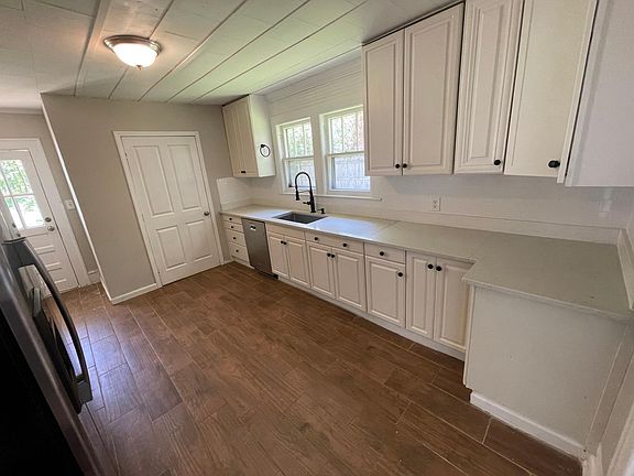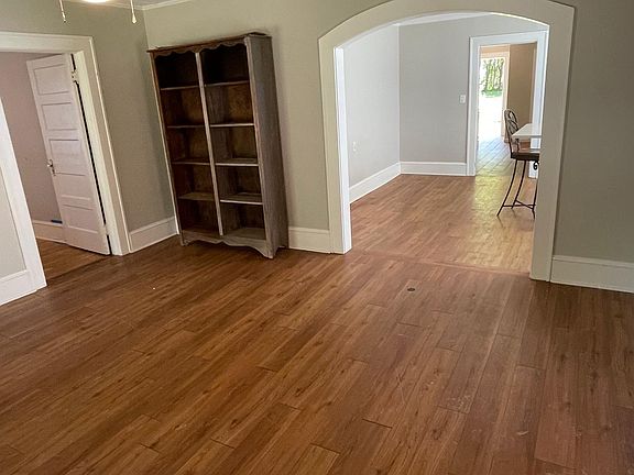 Wonderful 3 bedroom, full bathroom historical home with kitchen granite countertops, stainless steel appliances, builtin microwave, separate laundry room with washer and dryer provided. Granite builtin high table in dinning room opening up to front den/great room. Hardwood floors with tiled bathroom and arched doorways. Spacious front porch with built in bench swing. Off street parking with carport, storage room and large private backyard. Walking distance to library and downtown Liberty restaurants and shops. Call for showing. No smoking in home