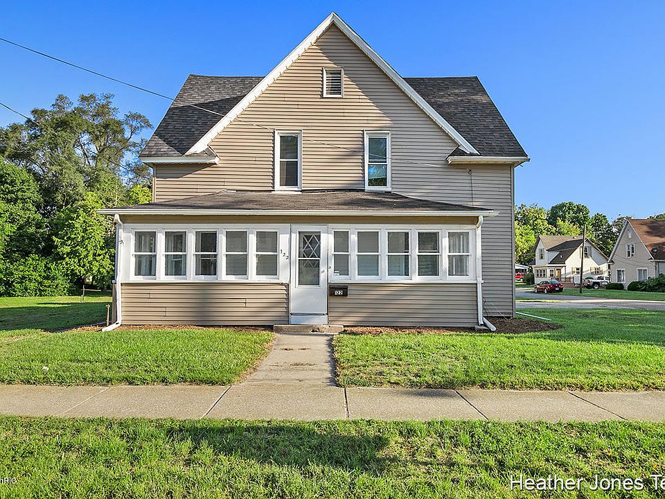 This 1,800 square foot Belding home sits on a roomy corner lot close to Ellis School and down town! Main floor features a large living room, dinning room, kitchen, full bath, laundry room, along with a spacious 3 seasons porch. On the second floor you will find 3 good sized bedrooms and another full bathroom. Home has had may updates through out the years including roof, windows, furnace, even a waterproofed basement!