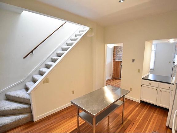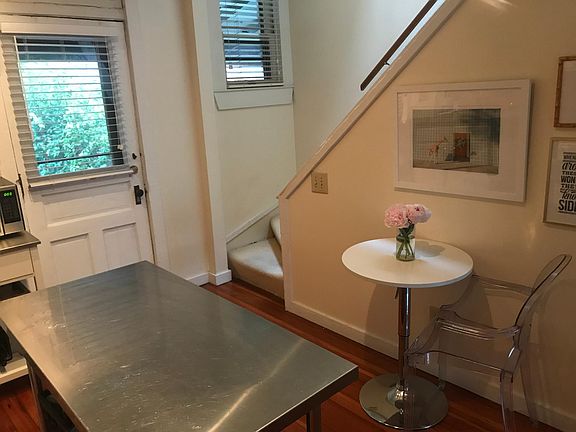 This two bedroom, two story townhouse is located in the heart of German Village, a historic district in Columbus Ohio. It is a classic German Village apartment, with exposed brick walls, a decorative fireplace, original refinished old pine floors and a private patio for grilling or lounging. A skylight and large windows make this a sunny, cheerful place to live. The spacious kitchen with stainless steel island is great for cooking and entertaining. A pass through from kitchen to living room makes entertaining easy. There is a full, dry basement for storage. A washer and dryer are included, as are central air conditioning and storm windows for energy efficiency. The Frankfort Street location is just around the corner from Third Street restaurants, coffee shops and stores. Owner pays for Trash and Recycling. Tenant pays gas, electric, water. No smoking inside apartment