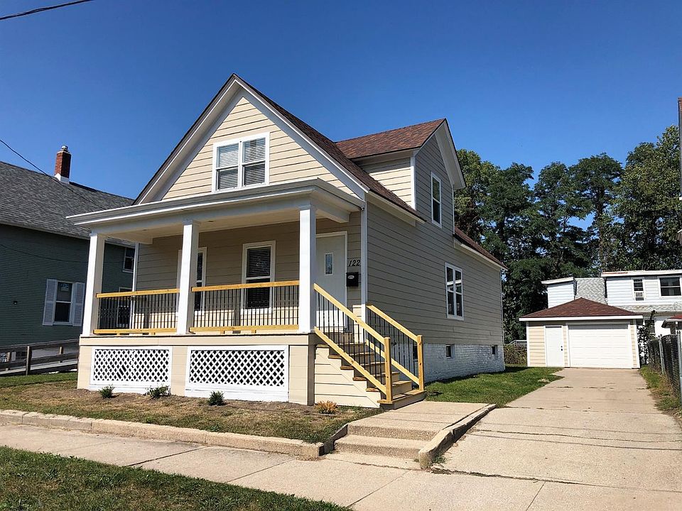 COMPLETELY REMODELED - This 1.5 story Cape Cod home is beautifully done inside and outside! 3bed/2bath - 1 main floor bedroom, plus 2 bedrooms with walk-in closets upstairs; full bathroom on both levels! Main floor also has a gorgeous NEW kitchen with island, stainless steel appliances, soft-close cabinets & drawers; dining room and living room. ALL NEW: drywall, electrical, roof, gutters, HVAC (furnace/central air/ductwork), water heater, plumbing, windows, doors, flooring, siding, baths, kitchen, appliances, and more. Very nice front porch, full basement, fencing in backyard, and a detached garage. MOVE-IN READY! This could check all the boxes for your perfect place to call Home.