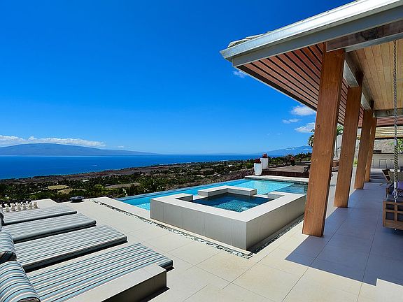 From the very top of Launiupoko, enjoy expansive ocean and tri-island views. This home features distinctive architecture, unique designer finishes, and careful selection of furniture and art. As you walk through the distressed teak front door, the big blue ocean views will take your breath away. Enjoy indoor-outdoor living with an impressive 10'x21' glass doorway that leads out to an expansive covered lanai and infinity pool with spa. There is a hanging couch to relax on and breath in the tropical air, watch the whales breach, the sailboats pass and the colorful Hawaiian sunsets. Sitting at the top of Launiupoko in Makila Ridge, the ocean views are truly panoramic. Convenient location above Launiupoko Beach and just 5 minutes to Lahaina town.