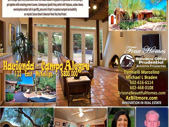 Location Location! 0.84 Acre Site in Valley Center. Scottsdale School Districts & City of Tempe address North of the Salt River adjoining Phoenix's Historic Papago Park. Minutes from Phoenix Zoo, ASU, Airport, Scottsdale & downtown destinations - convenient to freeways! Step back in time to the OLD WEST in this updated historic Hacienda-style residnece on the Eastern flanks of the Papago Buttes of our 1200 Acre Papago Park with 300 feet of park-frontage. Open & airy Southwestern home with indoor/outdoor living spaces for entertaining & get-togethers while remaining private & serene. Contemporary Spanish living comfort with fireplaces, outdoor-shower, covered patios outdoor built-in gas BBQ, prep-area & firepit in a spacious courtyard surrounded by our majestic Sonoran Desert & Mountain Views. Very Very Private! Neighborhood Description Acre Homesites built along Canal Park section of Papago Park. LOCATION LOCATION 0.84acres in Valley Center. Scottsdale SCHOOL DIST & City of TEMPE address north of the Salt river. Minutes from PHOENIX Zoo Pro-BASEBALL ASU Airport Scottsdale + Downtown Phoenix convenient to freeways. Step back in time to the Old West in this updated historic Hacienda-style residence. On the Eastern flanks of the Papago Buttes of our 1200 Acre Papago Park with 300'feet of park-frontage. Open & Airy Southwestern home with indoor/outdoor living spaces & a guesthouse for entertaining & get-togethers while remaining private & serene. Contemporary Spanish living comfort with fireplaces, outdoor-shower, covered patios outdoor built-in gas BBQ, prep-area & firepit in a spacious courtyard surrounded by our majestic Sonoran Desert & Mountain Views! Very Very Private