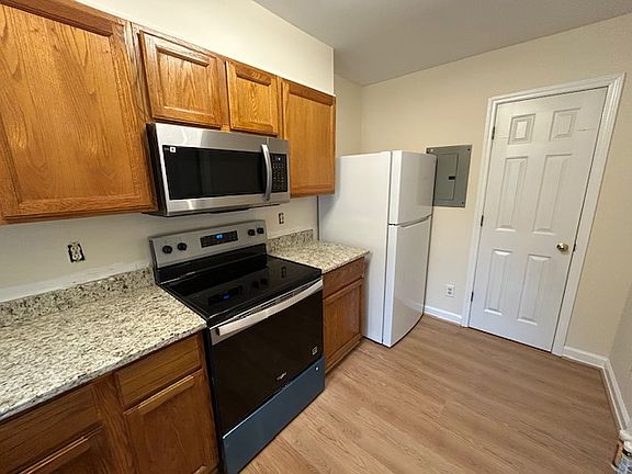 Bright and airy, fully updated 2 Bed/2Bath half of a duplex near downtown Wake Forest. Private entrance, your own driveway and backyard. Feels like a single home. The entire place has been updated with granite in the Kitchen, SS Appliances, new vanities in bathrooms, lighting and blinds and new Vinyl flooring throughout. Large family room and good sized bedrooms with an En Suite Master. Plenty of parking and a storage shed along the side. 3X monthly salary required. No evictions or Sec 8 accepted. Pet fee may apply for a dog (no cats allowed)- no other hidden fees Tenant responsible for lawn maintenance One year lease- shorter timeframe is negotiable No Smoking or vaping Tenant is responsible for water and electric utilities Max of one dog allowed Security is at least one month's rent Tenant is responsible for Lawn maintenance and general upkeep of the yard