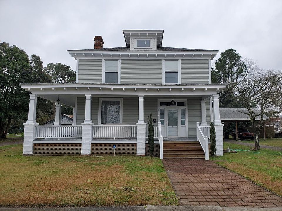 Remarkable restored Historic home . Absolutely stunning. 4 huge bedrooms two baths, Soaring ceilings in the Living room and dining room, screened in back porch and large deck. A new detached single garage was added recently.
