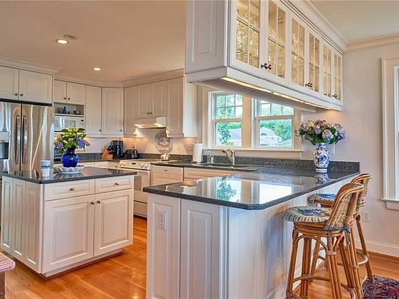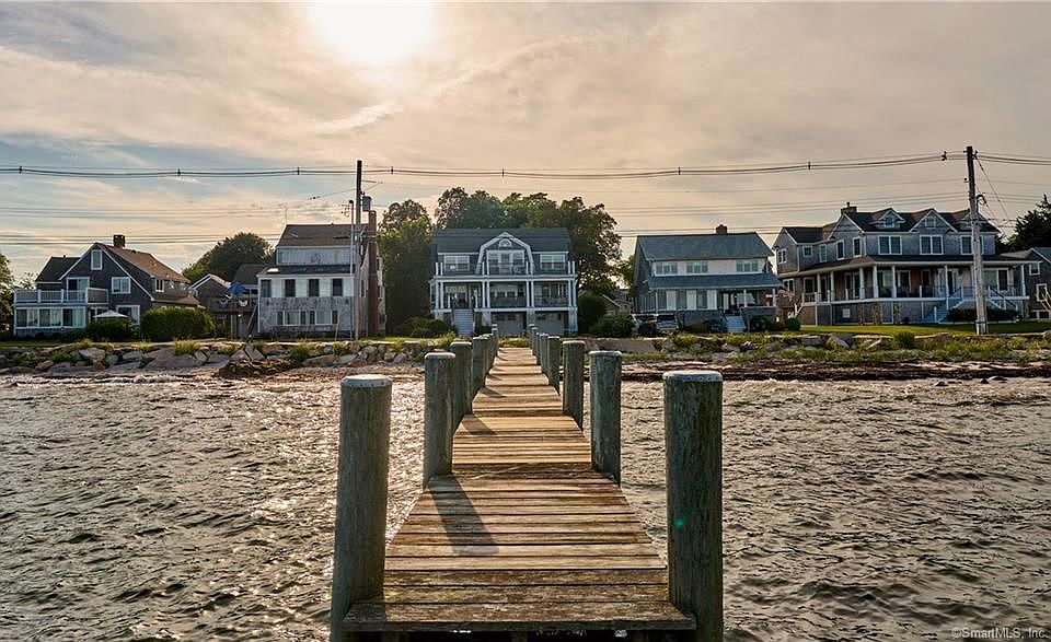The striking ocean views of Long Island Sound will captivate you the moment you step into this custom-built Nantucket-style shingle home. Meticulously maintained and quality constructed, no detail has been forgotten in this spectacular 5-bedroom 4 bath property located in a highly desirable private beach community. Designed to capture gorgeous views and prevailing sea breezes from every room. Beyond the 0.30 acres of professionally manicured lawn and gardens, the property offers a 110 ft dock perfect for swimming, boating and mooring, as well as a private beach area. The main floor features a sunroom, a den that could be used as a bedroom, a full bath, an open plan kitchen with an island, breakfast bar and grilling deck, a dining area, a living room with fireplace, and a spacious covered front porch spanning the entire width of the house. The layout is perfect for entertaining and al fresco dining while enjoying beautiful sea views and magnificent sun and moon rises. The second-floor features 4 bedrooms including a large ensuite master bedroom with walk-in closet and tiled bath, and 3 additional bedrooms with 2 full baths, and a large deck. Ideally located within walking distance to excellent recreational amenities including beaches, tennis courts, and access to a yacht club offering a full array of activities for children and adults.