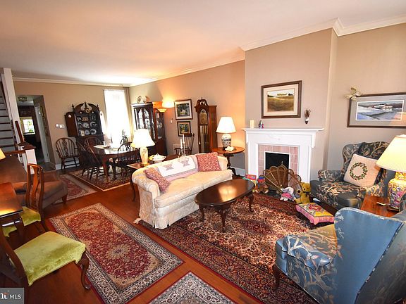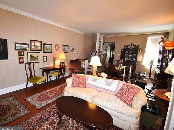 Lovingly restored and remarkably well kept circa 1850, 4 bedroom, 1 1/2 bath, 2 1/2 story home with basement and garage in the historic Yorkshire section of Burlington City. On the outside, granite curbs, brick sidewalks, divided lite windows, real wood shutters, window pediments and real brass hardware set the tone for this historic home which seamlessly integrates old with new. From the covered front porch you step back in time into the formal living room and dining room with traditional high ceilings, crown molding, hardwood flooring, faux fireplace, large windows and a unique staircase. Moving toward the back of the home you pass the powder room and laundry which brings you into the spacious eat in kitchen with real wood cabinetry, granite countertops, tile backsplash and a peninsula with cabinetry above and below. Beyond the kitchen is the sunken family room with a generous storage closet and a 3 panel swingset full glass door that leads to a 16' Trex deck with a full canopy above for shade and privacy! Beyond the deck is a beautiful hardscaped and landscaped garden paradise with a brick walkway that leads to the garage at the rear of the property. The second floor of this home features a full bath, primary bedroom with sitting room and a second bedroom. The sitting room is accessible from both the common hall and the primary bedroom making it an excellent nursey, office or dressing room. The 3rd floor has 2 additional generously sized bedrooms. This home is located within easy walking distance of the downtown business district with its shops and restaurants and 2 blocks from the Delaware River Promenade, a great place to watch the boats, fish or just view the sunset. As you can see by the pictures this home is clean, well maintained and in "move in" condition. Schedule a showing and see for yourself...... You won't be disappointed! PS......theres a virtual tour of this home attached.!!! ***Please note that this home requires flood insurance.