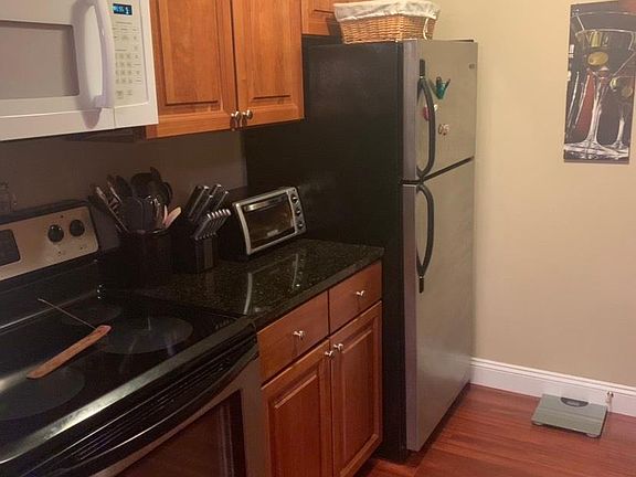 Bright 2 Bed 1 Bath Condo corner unit on second floor available for rent lease towards end of June 2020. It has upgraded floors. Kitchen has upgraded Cabinets, Floors and Granite counters. Closet in each of the bedrooms. Master bedroom has a walk-in closet and additional storage. Another closet in bath also. Covered Patio for relaxing. Located off Exit 8 of I-93 in Manchester so easy to and from 93 and 101. Minutes from Mall of NH, Manchester Airport and downtown Manchester. Washer/Dryer just outside within building on the same floor. Cats maybe ok but subject to policy and approval. Amenities include fitness center and pool, and the area is great for walking or running. Off-street parking in building lot. There is a storage cage in the basement. Good credit and non-smoking. Please contact here for additional information and terms. Trash and Water included in rent.