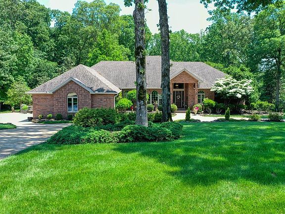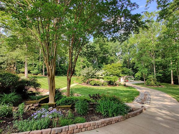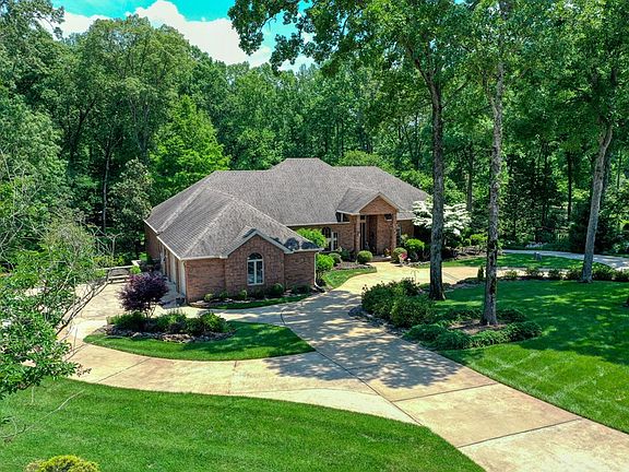Custom brick on 1.65 acres in the county with easy access to city amenities. Columns separate foyer, dining and living areas with stone gas log fireplace. Kitchen has large work island, lots of storage, stainless steel appliances and breakfast nook with views of the back grounds. Master suite w/sitting area, spacious bath and walk in closets. 2 guests rooms w/Jack and Jill bath. Additional room serves as nursery/office/craft room. Trey ceilings, hardwood in main areas, natural light, wide hallways, deck across the back and more. Kitchenette and bath in basement create options for additional living area or man cave. Take a nature walk through your beautifully landscaped grounds.