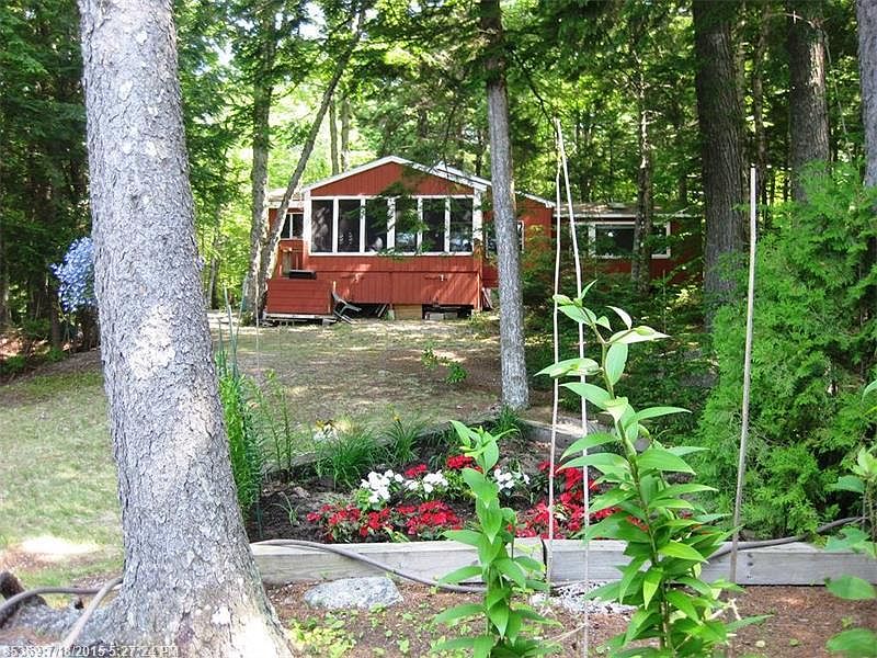Quintessential Maine Camp being offered fully furnished right down to the kayak! Southwestern views for spectacular sunsets! The waterfront sitting platform and pocket beach area make a great swimming area and it is easy to launch your canoe/kayak. Double lot for increased privacy with beautiful natural landscaping. The 12 x 17 screened in porch extends the cozy interior living space with views to the pond. The camp has been meticulously maintained and comes generator ready. Come take a look today!!