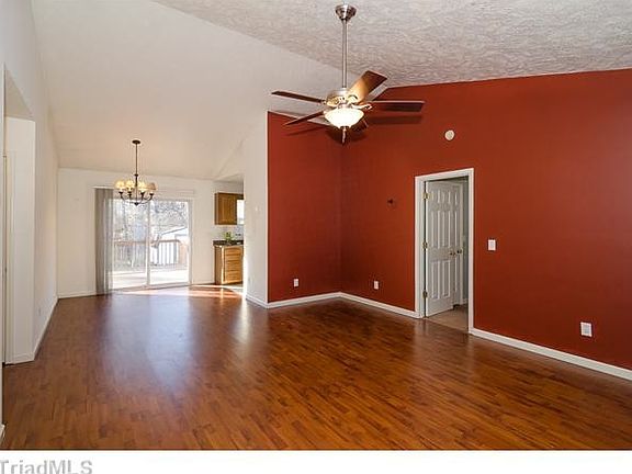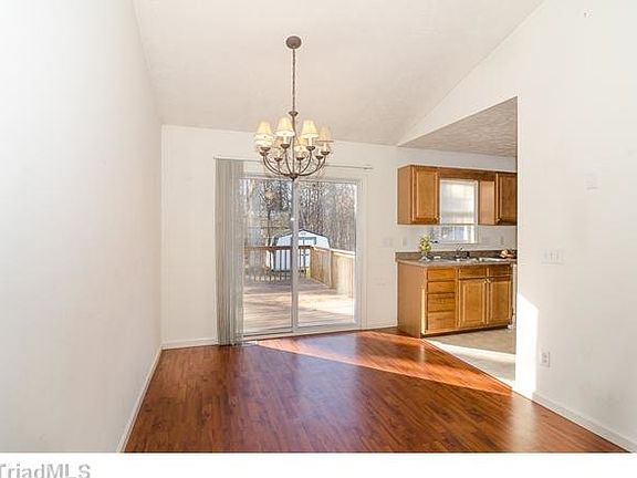 Darling One Level Ranch home! Rock your afternoon away on this rocking chair front porch. Oversized incredible parking! Split bedroom plan. Living area boasts beautiful wood laminate flooring. Soaring Cathedral ceilings in the open living area! Spacious deck off kitchen for outdoor entertaining overlooks the Large flat backyard with Privacy in Back! This lovingly cared for home is Cute as a BUTTON!