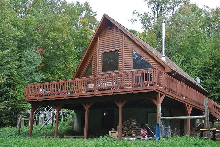 Privately situated, well-maintained Chalet-style log home on 6.31 acres of wooded and open land. Wood floors throughout, with open, light living space. Beautifully maintained with clean, appealing lines, it is a perfect country home, minutes from Stamford, 1/2 hour from Oneonta. There is a spring-fed pond, trails, fruit trees and an open field where the prior owner enjoyed horses. A one car garage is presently used as a wood shop. The basement is partially finished and plumbed for an extra bathroom.