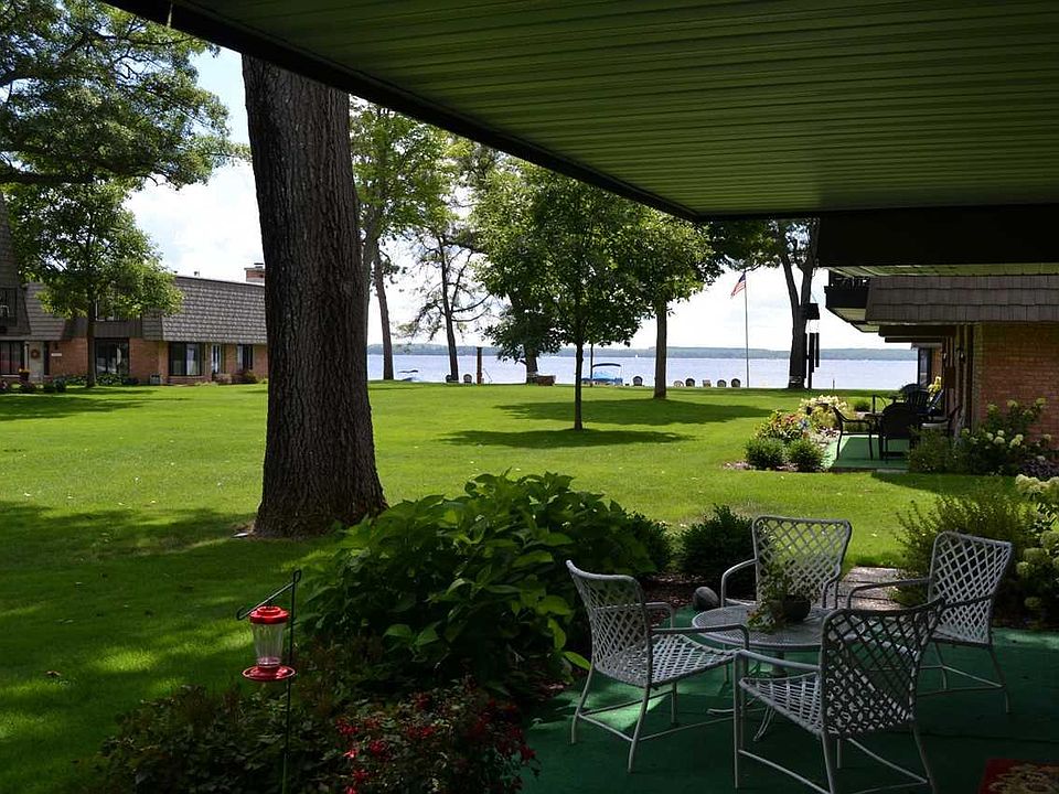 First floor condominium with lake views and short distance to 250' of association sandy beach. Just step out of the sliding glass door and walk approximately 300 feet to the lake shore, this unit is well maintained, updated fixtures and granite counters in bathrooms plus solid surface kitchen counters. ** ATTENTION ALL Buyers attending a showing must sign SHOWING CERTIFICATION and RELEASE PRIOR to showings ** All attendees wear facial covering... make sure buyers avoid touching all surfaces...please remove shoes... once showing is complete, please sanitize all light switches, door handles, lock box, etc... and finish showing with extended conversation(s) outside