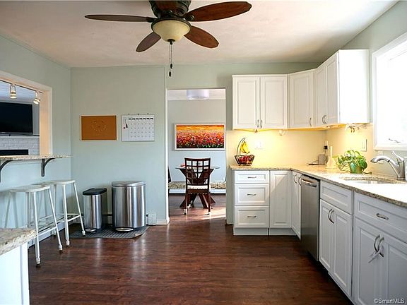 Motivated seller! You'll be happy to call this up-dated colonial "home". Large recently remodeled kitchen with NEW kitchen cabinets, NEW stainless steel appliances, gas stovetop, with NEW granite counters and granite breakfast bar...could be a kitchen/family room combo. First floor laundry and brand new half bath...main level has all new laminate flooring, for easy cleaning and up-keep. Enjoy evenings by the fireplace when you entertain your friends in this bright living room open to the dining room. Upstairs is a hallway with bamboo floors leading to three good-sized bedrooms. Get ready for summer barbecues on the patio. Newer deck around the pool. You'll enjoy lots of warm weather activities in this pet and kid-friendly private fenced level yard. It's located in a walking-friendly sidewalked neighborhood- convenient to highways, shopping, recreation areas. You'll love hiking at near-by Sleeping Giant state park. Put this one on your short list and come see it now, priced aggressively so don't wait!!