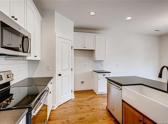 New construction with top notch quality!! Beautiful white custom cabinets contrast well with the dark granite countertops. Farmhouse Hickory wood floors really make this home shine with the open floorplan and gaslogs fireplace. Master suite with vaulted ceilings and double sink. Very modern look with the gunmetal fixtures. Convenient location south of downtown Concord.