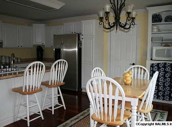 This home is located in a quiet, scenic subdivision about 15min South of Huntsville in a Cul-de-sac. - Recently remodeled kitchen and bathrooms and re-painted throughout - Concrete driveway and sidewalk - Restricted Subdivision - Beautiful Brazilian Cherry hardwood floors throughout downstairs including steps and upstairs hallway - Private Balcony off Master Bedroom - Master WIC with window - Screened in porch - Bluff View - Woodburning fireplace converted to Gas logs - Grilling deck and Chicago-style brick patio - Fenced and landscaped back yard with rock pathway - Cute, 8X8 storage building on concrete pad - Stainless kitchen appliances - Kitchen with Breakfast nook, island and full pantry - Monitored security system - Crown molding thoughout downstairs and Master - Faux Plantation blinds throughout - Bonus room with gas fireplaceAdditional property info: http://www.forsalebyowner.com/listing/3-bed-Single-Family-home-for-sale-by-owner-122-Given-Cove-35754/23942652?provider_id=28079