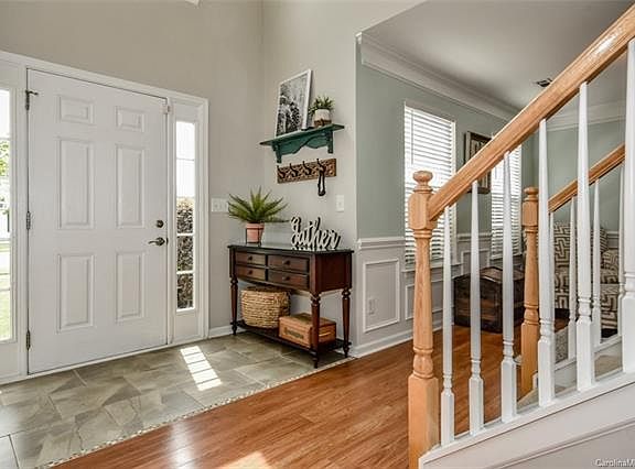 Welcome home to this beautiful 4 bedroom, former model home in desirable Curtis Pond. Fresh paint in most rooms, open floor plan. Kitchen with gas stove, plenty of cabinets and stainless appliances including a new dishwasher! Breakfast area. There is a great flex room to use as a sitting room, playroom or office. Beautiful wood or wood laminate floors upstairs and down. No carpet except on the stairs. Some new light fixtures, tankless water heater. The flat, fenced backyard has a huge deck and a beautiful landscaping wall of great plantings. Garage has a large work bench. Great location close to shopping and easy access to the interstate. Frig, LG front load washer and dryer included so you can move right in! Home warranty.
