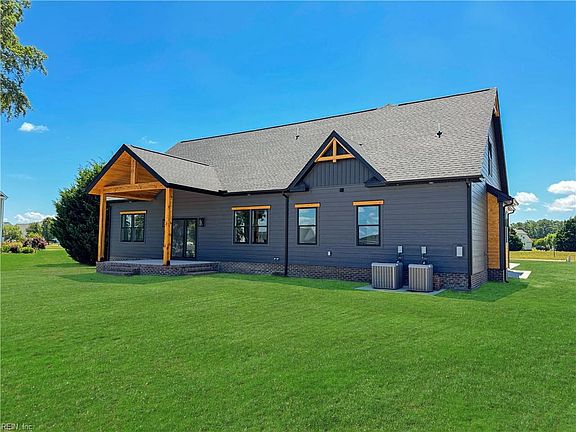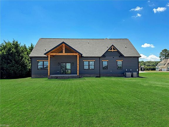 Discover the essence of modern farmhouse charm in Elizabeth City's Tooley Harbor neighborhood! This unique new construction home redefines the neighborhood's aesthetic with its striking red cedar and cypress wood accents contrasting beautifully against the color-negative siding. Inside, you'll be greeted by gorgeous farm-style light flooring and an inviting fireplace. This spacious home offers four full bedrooms and 3 full baths, all with dual vanities, plus an oversized family room over the garage and a massive walk-in attic with flooring for storage. It features granite countertops, stainless steel appliances, and much more. Come and experience the HomeLink difference and discover why our properties are BUILT BETTER, from the ground up. Call for more information or to get your dream home started!