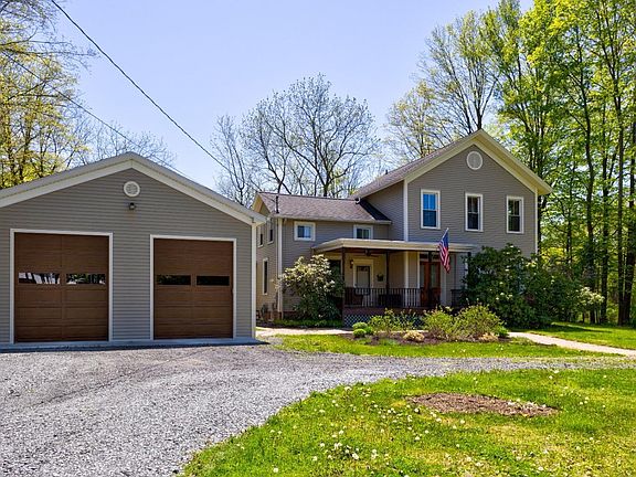 Updated 1839 Colonial with 3 bedrooms plus a nursery on a private, wooded lot; large family room witth a gas fireplace; Trex rear deck (2021) with spacious views; wide hardwood floors throughout; modern kitchen with all appliances included. Charming period touches include nine-foot ceilings, pocket doors & moldings, along with modern updates such as mahogany front porch w/ large ceiling fan. Newly-built garage has 2-10' doors for RVs/large trucks with EV charger installed. New boiler (2019), newer windows throughout, shed, new gutters. Short walk to elementary school in a highly-rated school district. Fifteen-minute drive to Albany, shopping in East Greenbush & Amtrak station to New York City. Summer destinations such as Tanglewood in the Berkshires and Saratoga Springs are less than an hour away.