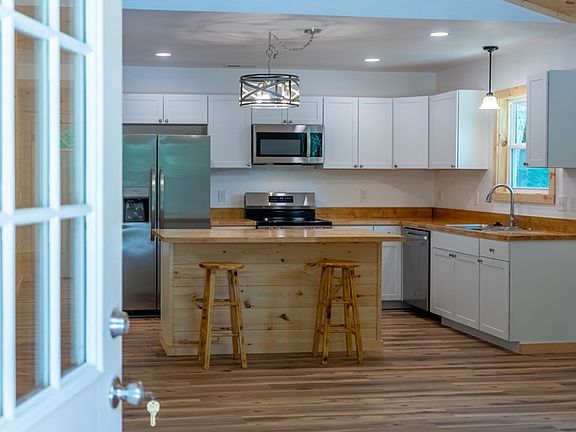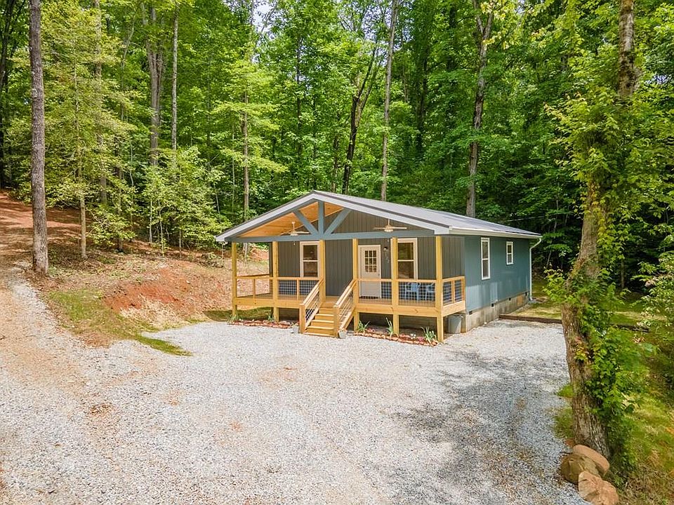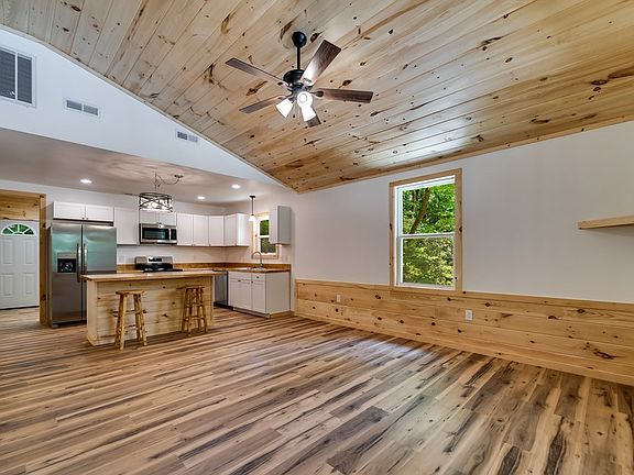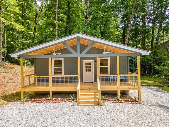 Brand new, move-in ready 2 bedroom 2 bath cabin conveniently located between Bryson City and Cherokee in a quiet neighborhood! Main-level living with a large open concept floor plan with vaulted tongue and groove ceiling in the spacious living area. The adjacent kitchen features an island with 3 person breakfast bar, stainless appliances, ample cabinet and counterspace and gorgeous butcher block countertops. The spacious primary bedroom has a vaulted tongue and groove ceiling, large closet and ensuite bath with dual vanity. The guest bedroom is complimented by wooden walls and ceilings and is adjacent to the 2nd bath. The XL laundry room has plenty of space for storage or a large pantry. From the covered front porch you can hear the Oconaluftee River flowing. If you are an angler, there is a large fishing pier and a canoe launch within walking distance. The home has a metal roof, central heat and air, a flat low-maintenance yard, and easy access to a state-maintained road. Would make a great vacation rental or year-round home and is one of the nicest homes in the dam neighborhood!