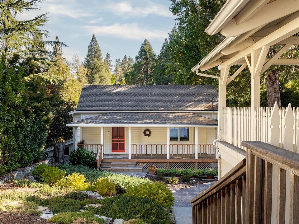 A gem! Rare opportunity to own a creekside property on Grove St. Unique design takes advantage of hillside & Deer Creek. Home offers elegant simplicity in an idyllic spot. Two bedrooms, two bathrooms, two levels. Kitchen open to living, dining, family. Bedroom & full bath complete this level. Large windows highlight enchanting creekside view. Vaulted wood ceiling. Stunning cypress floors. Upper level loft, bedroom, full bath. Front porch, side deck, rear deck enclosed with glass & screens; ironwood floor, small deck. Garden room below sits behind french doors along the path to Deer Creek. Access to partial, unfinished basement, w/urinal.