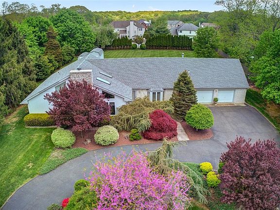 Beautifully custom built home offering open floor plan, sunken LIV with neutral carpet. LIV offers floor to ceiling stone WB fireplace and skylights. Solid wood floors. Gourmet KIT offers granite counters, built-in wine rack, SS refrigerator, gas cooktop & electric wall oven, lots of storage & prep space & a center island and separate dining area. Vaulted ceilings in LIV and MBR. Plush carpeting in MBR. Main bath offers Jacuzzi tub and shower. LIV offers floor to ceiling stone WB FP, skylights. Home offers oversized windows to allow natural sunlight to filter inside. Fabulous mature landscaping and 3 season sunroom overlooking manicured private, yard and paver patio. Roof (2015) 200 amp service. Great location--near NJ Turnpike & Rt. 130, Forsgate Country Club and shopping. Great school system. If interested in public sewer, sewer line is on Deer Path Rd. bordering curb of the property. Room to expand up or use one of the garage bays.